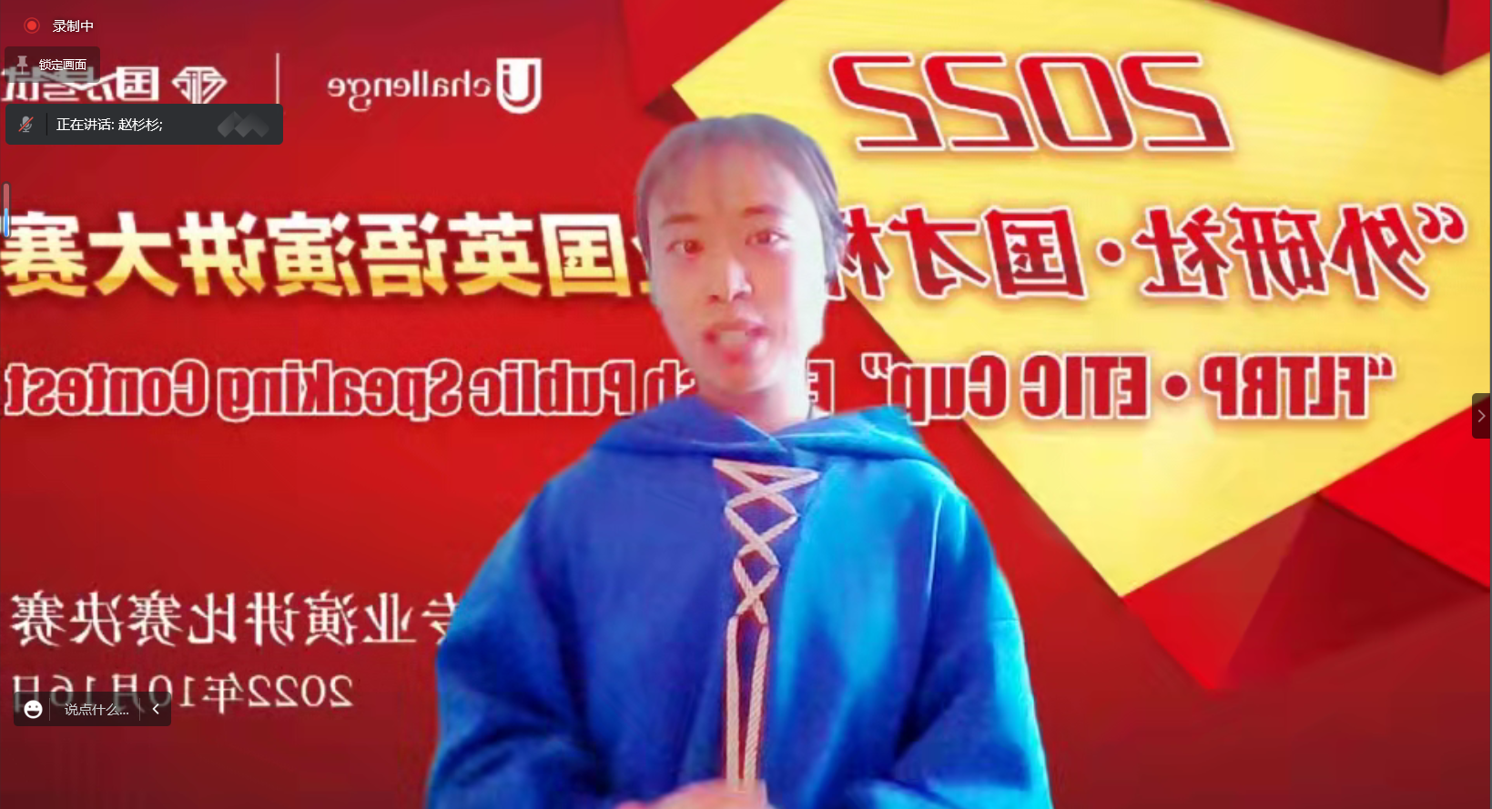 演讲比赛初赛分为英语专业本科组和研究生组,经过层层筛选,共有17名选手进入10月16日演讲复赛的最终角逐。五位教师担任评委,两位外教对每位选手的演讲进行提问。世界杯8833300足球副经理马菊玲全程聆听了选手们的精彩演讲,并进行了点评。演讲比赛分为定题演讲、即兴演讲与回答问题三个环节,以“China’s Wisdom for the World”为主题进行演讲。选手们克服了网络卡顿、声音传输不清晰等困难,声情茂、吐字清晰、极富感染力,面对评委的提问,逻辑清晰,表达流畅,给观赛的同学和老师留下深刻印象。