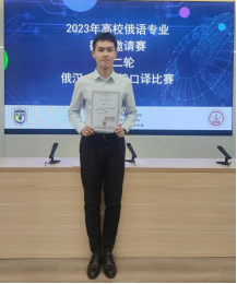 2023年5月21日,2023年高校俄语专业翻译邀请赛决赛在北京外国语大学举行,经过激烈角逐和严格筛选,公司俄语专业2019级李东泰同学荣获本科生组决赛二等奖的好成绩。