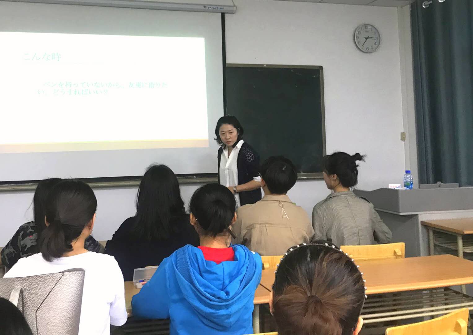 为了配合期中教学检查工作,2019年5月22日下午,由公司专业外语教学各系与“教学名师工作坊”联合举办的教学观摩活动在世界杯8833300足球314室如期举行。观摩活动由赵晓佳副经理主持,日语专业的崔沫舒老师、英语系的金丽华老师和王奕文老师、以及在全国专业外语教学比赛中获奖的预科公司的吴楠老师分别进行了高级日语听力、基础英语、英语阅读和商贸英语课程的课堂教学示范。