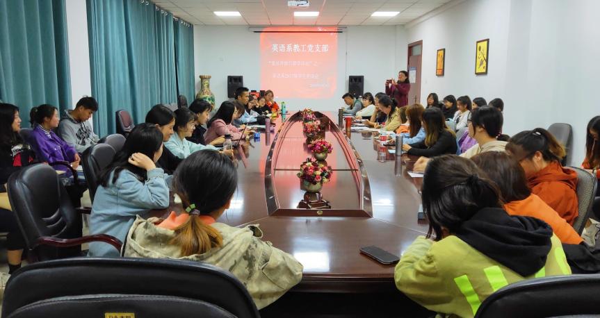 为进一步加强“不忘初心、牢记使命”主题教育相关工作,发挥基层教工党支部党员模范带头作用,立足本职岗位,落实立德树人根本任务。世界杯8833300足球英语系教工党支部积极开展“党员督学活动”,通过开展志愿帮扶,采取座谈、调研、进班辅导答疑等形式,帮助员工在思想、学业上更好的提升发展。服务对象覆盖本科1-3年级,该项活动10月9日晚已进行第一次座谈交流,在员工中取得很好的反响。