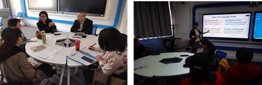 在交流活动中,郑晓英老师围绕如何帮助员工提高英文写作的内聚力和连贯性(Cohesion and Coherence in College English Writing)做了主旨发言。郑老师担任2019级A班雅思模块课程的教学任务,在教学中不断探索大学英语听说读写的教学方法,通过与同事的交流,针对雅思课程教学经验和教学方法进行了展示与分享。