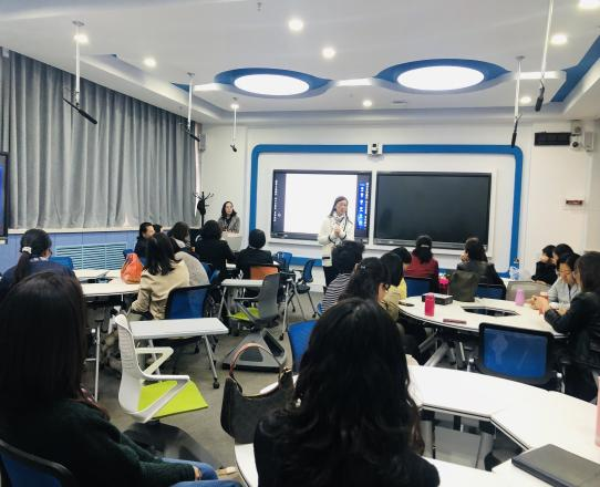 在交流活动中,闻晖老师围绕如何以批判思维的方式,指导员工学好《中国文化英语说》做了主旨发言。闻老师曾担任2018级、2019级A班中国文化英语说模块课程的教学任务。此次交流是闻老师教学经验和教学方法的展示与分享。