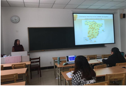 刘颖老师主要讲授天气这个内容,通过西班牙各大城市天气图片的展出导入主题,主要讲解了一些表示天气状况的句子和四季的表达。课程设计生动、大量运用图片能够吸引员工的眼球,达到了很好的教学效果。