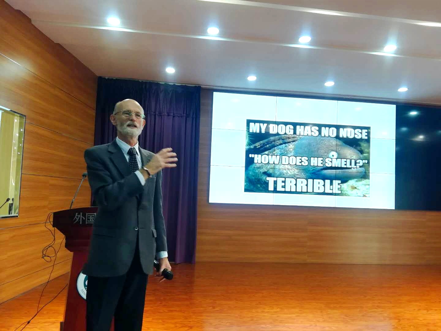 公司于2017年10月31日下午在403报告厅,特邀Colin Beaven教授为公司全体研究生和老师作了题为“Humour and Literature in Vocational Language Learning”的讲座。