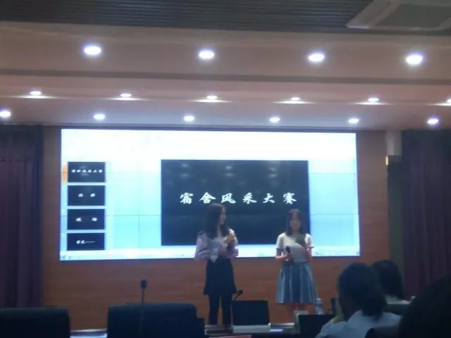 伴随着参赛宿舍的宿舍文化展示及才艺表演,比赛也接近了尾声。余洁老师给予了参赛宿舍充分的肯定以及对宿舍文化未来的期许。生活权益部的工作人员及时统计出比赛成绩,选拔出了标兵宿舍一名、先进宿舍两名、文明宿舍三名、优秀宿舍四名。由余洁老师以及徐洋老师为参赛宿舍颁奖。最后评委以及参赛人员和工作人员共同合影留念,为此次活动画上了圆满的句号。