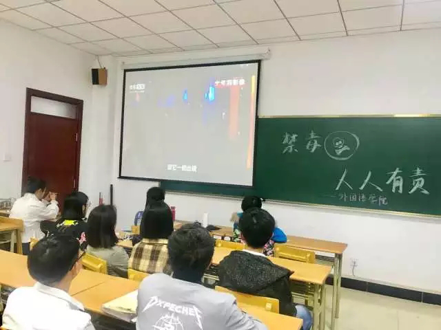 然后引入禁毒教育片《与死神共舞》,影片介绍了毒品在中国的逐渐扩散,和由于吸食毒品而造成的种种惨案,吸食毒品会造成幻觉,引发各种恐惧、亢奋、暴戾等情绪,最终造成难以挽回的伤害。然后同学们观看了禁毒微电影《噩梦》。