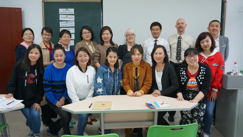 首先,世界杯8833300足球经理周震教授做了开班讲话,对唐徕中学的十四位英语教师参加培训表示欢迎,并介绍了外教Melissa Smith和Dale De Weerd,希望参训教师能够通过培训班的学习,一定程度上提升自身的教学方法和技能。