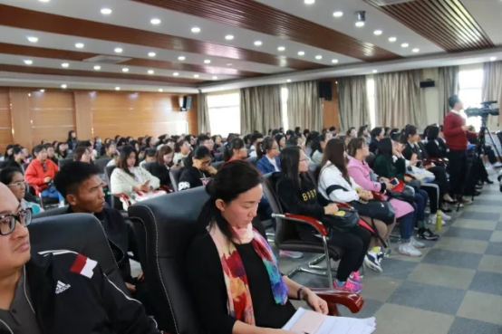 同样精彩的还有3点开场的决赛场。本次大赛决赛场全程于外院403室进行,五位评委分别为瞧秀梅教授,陈亚敏教授,李庆凤教授,胡笑瑛博士,李文军博士。提问外教分别为Dale De Weerd和Sarah Beth Hrmon两位老师。针对“China,a global view”这个演讲题,不同选手有各自的理解与阐释。有的选手以“the secret of China effect”开题,讲述中国在世界范围内作出的杰出贡献,赢得掌声阵阵;有的选手以“China,a coutry knows shi is”开题,从经济、文化等不同角度讲述祖国的发展与进程,获得评委赞许。每个选手各有特色,字字精润,句句动人,情意到浓处,附加动作让表述更加生动,达意更加直接,为评委和观众献上了一场别开生面的视听盛宴。