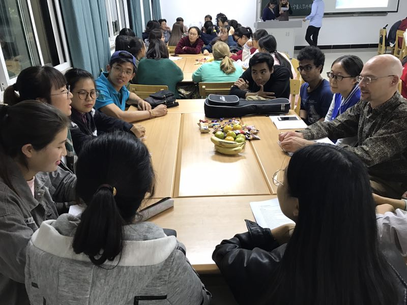 18:00在世界杯8833300足球213教室举办了以“My College Life”为主题的英语角活动。本次英语角活动邀请到了世界杯8833300足球外教,他们是Dale,Sarah Bet, Bob and Karen Cheah前来指导,公外部教师和UTALK协会员工协助,来自各个公司的80余名员工参加了此次活动。