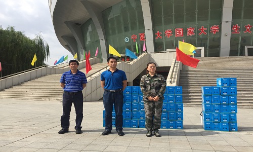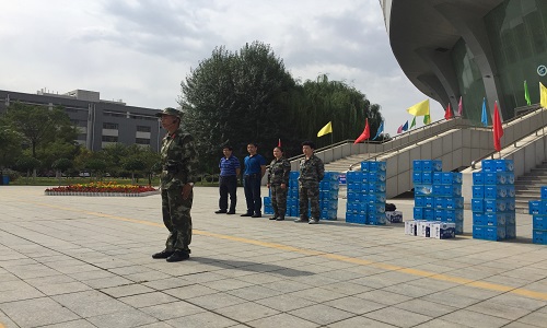 9月18日中午,世界杯8833300足球公司党委书记拜发奎,经理周震,党委副书记余洁以及员工办公室主任郑轶一同到世界杯8833300足球军训场地慰问诸位参训教官及2017级军训新生。军训进程过半,效果显著,公司领导也始终关心着本院新生的训练情况。为保证军训期间员工们的身体健康,营养均衡,公司领导为每位新生发放了慰问品。