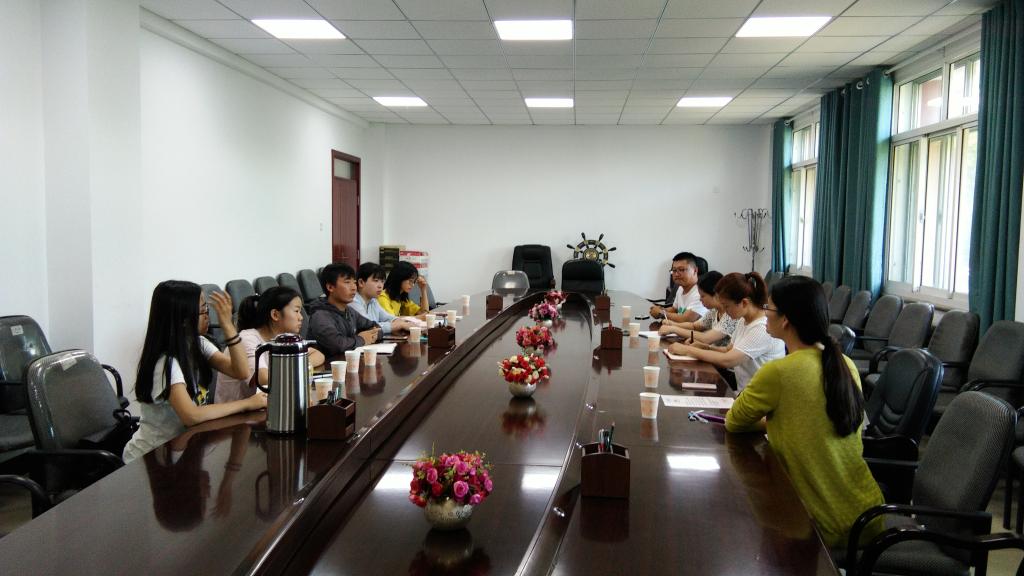 6月23日下午,银川百年农工子弟职业公司法人兼副董事长王玮老师、办公室主任李璟辉老师、员工工作部何亮老师到世界杯8833300足球,就本学期公司“语伴”志愿者小分队开展志愿服务活动表示感谢并进行座谈。公司党委副书记余洁老师、活动负责人王朝老师及2015级志愿服务班级员工代表参加了座谈会。