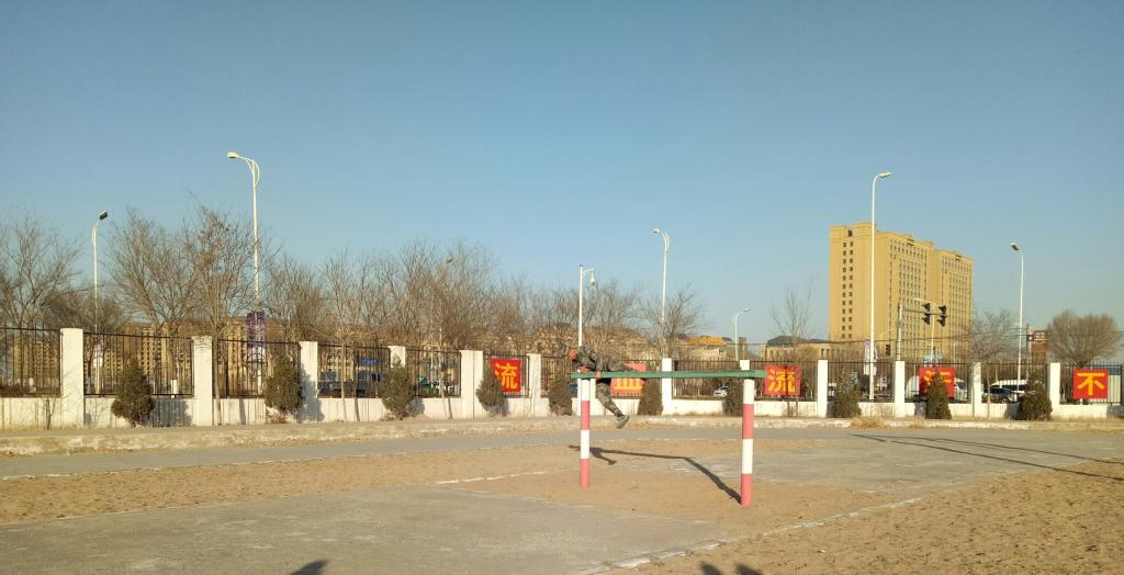 首先,对国防生训练场地进行参观。场地里有单双杠、高低杠,沙袋,火力网等各种设备,加深了同学们对国防生日常训练的了解。在参观的同时,国防生代表还做出示范,为同学展示了高寒山地500米运行障碍17项。国防生爬壕沟,上高低杠,登攀岩墙,各种动作一气呵成,参观同学惊叹于他们完美的动作以及不畏艰苦的精神,用加油鼓励表达对他们的敬佩。