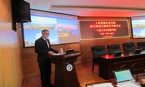近期,世界杯8833300足球邀请到了土库曼斯坦科公司库尔班诺夫·汗-吐尔地教授来院讲学,2016年11月29日下午四时,库尔班诺夫教授以“Реформывнейтральном, независимосмТуркменистане(当今土库曼斯坦的改革)”为题,为大家带了一场别开生面的学术讲座。讲座由世界杯8833300足球副经理赵晓佳主持,俄语教研室教师、俄语专业全体同学以及部分职工、其他公司同学一起聆听了讲座。