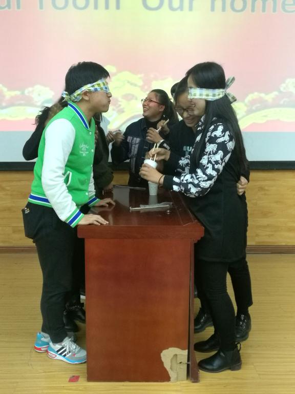 比赛中间的游戏环节,参赛选手积极参加,宿舍成员默契十足,相互配合,努力取得最终的胜利,评委观众们为各宿舍加油助威,现场热情洋溢。