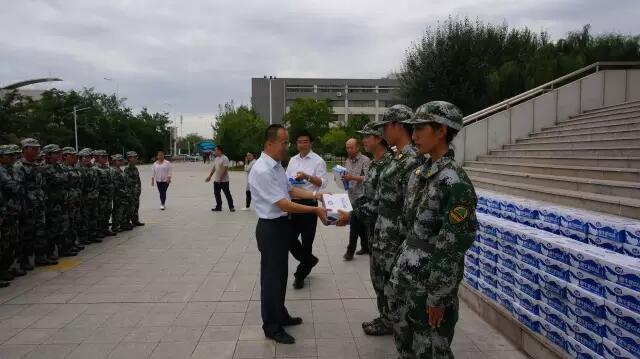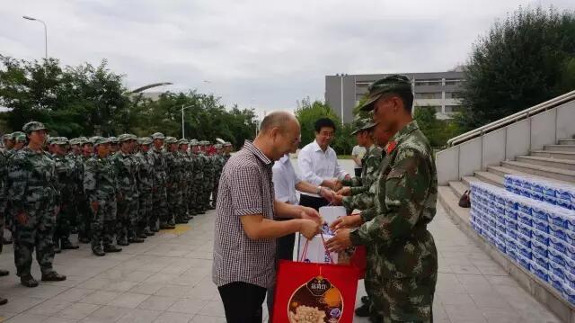 军训进程过半,效果显著,公司领导也始终关心着本院新生的训练情况。为保证军训期间员工们的身体健康,营养均衡,公司领导为每位新生发放了慰问品。
