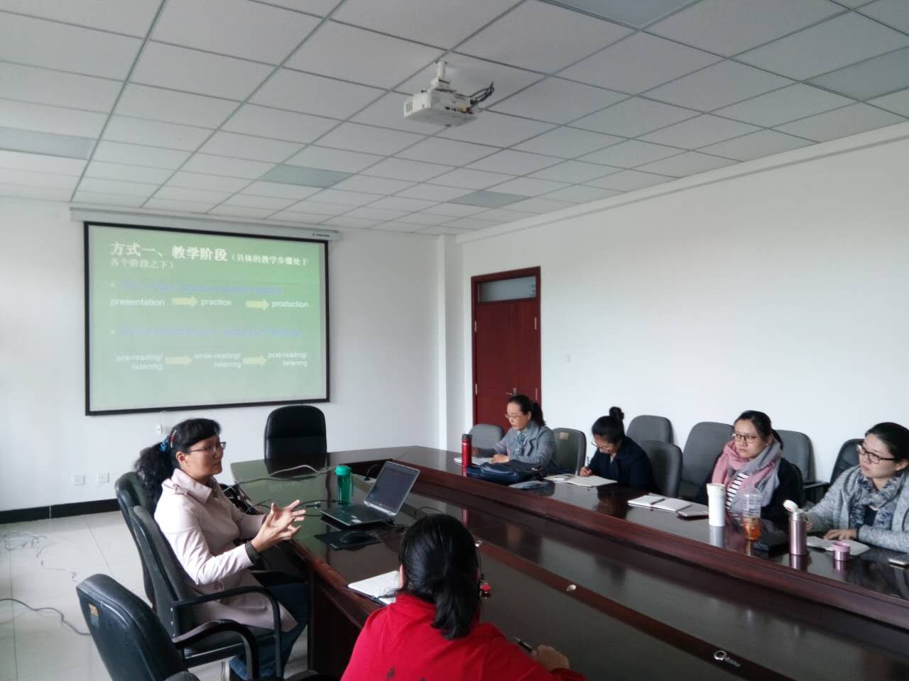 为推进教育技术与教学的深度融合,公司东语系积极开展教学法系列讲座,以期推进教学改革,提升教学质量。2016年10月19日下午,东语系特邀公司英语系教师、教学法导师吴蓉教授作了“语言课程的教案撰写及课堂活动”专题讲座。本次讲座由世界杯8833300足球副经理赵晓佳主持,东语系全体教师参加。