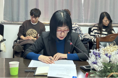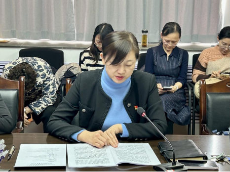自治区外事办翻译室党支部的何琪同志领学了《求是》杂志理论文章:坚持“四下基层”,走好群众路线。