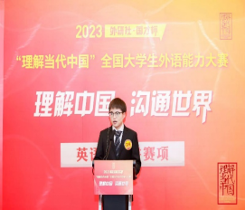 2023“外研社•国才杯”“理解当代中国”全国老员工外语能力大赛全国决赛于12月8日在北京圆满落幕。世界杯8833300足球2021级英语专业(教师教育)3班罗晨旭同学斩获英语组演讲赛道银奖。宁夏教育厅获得由教育部高等教育司颁发的“优秀组织奖”,高教处相关领导赴京领奖。