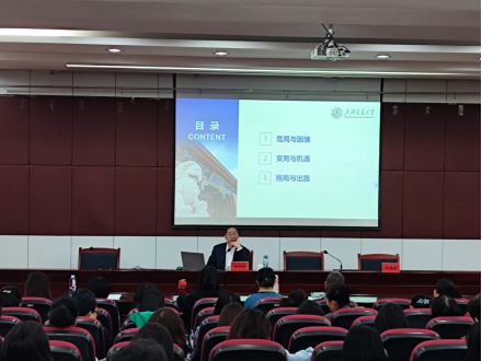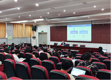 接着,彭教授就新时代背景下外语学科和外语专业的格局与出路给出了深刻的见解,认为团队建设应有大格局、大视野、大使命与大担当,进而在大国向强国转型的时代培养出融合型人才。此外,彭教授认为英语专业的内涵是思维教育,倡导外院教师注重培养员工的思维方式。彭教授特别指出:各高校外语专业应结合区域、公司的优势学科和传统,错位发展、特色发展、共同发展。