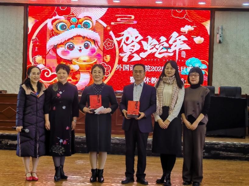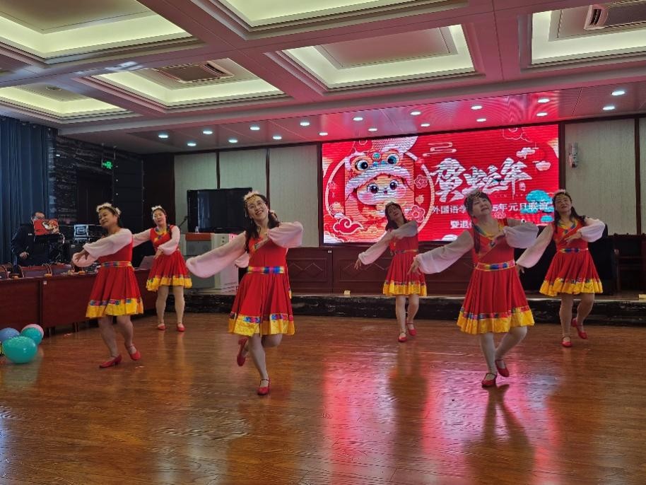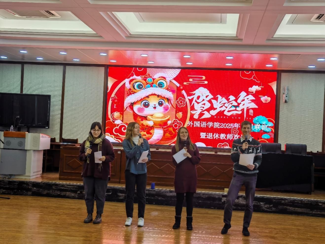 在老师们热情的欢呼声中,联谊会正式拉开帷幕。在“恭贺蛇年”的大背景下,几位研究生代表带来了激情四射的开场舞。动感有力的舞步,瞬间将现场观众的热情点燃。接着,有马真老师的男声独唱《游牧时光》、有唯美的舞蹈《娥嫚》、有外教老师的歌曲表演、有公司歌唱小组带来的歌曲串烧、还有王晓军老师的葫芦丝表演和宋江录老师的秦腔表演。