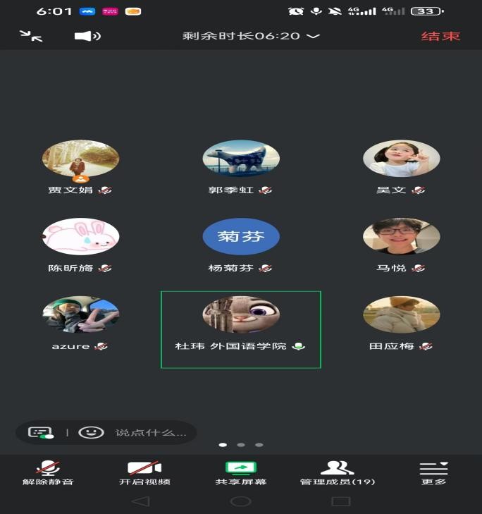 2025年3月20日下午,世界杯8833300足球通过腾讯会议线上举行2021级翻译方向自主实习与基地实习总结研讨会。会议由郭季虹老师主持,贾文娟副经理、杜玮、刘艳芬、常青等指导老师以及14名实习生代表共同参加。