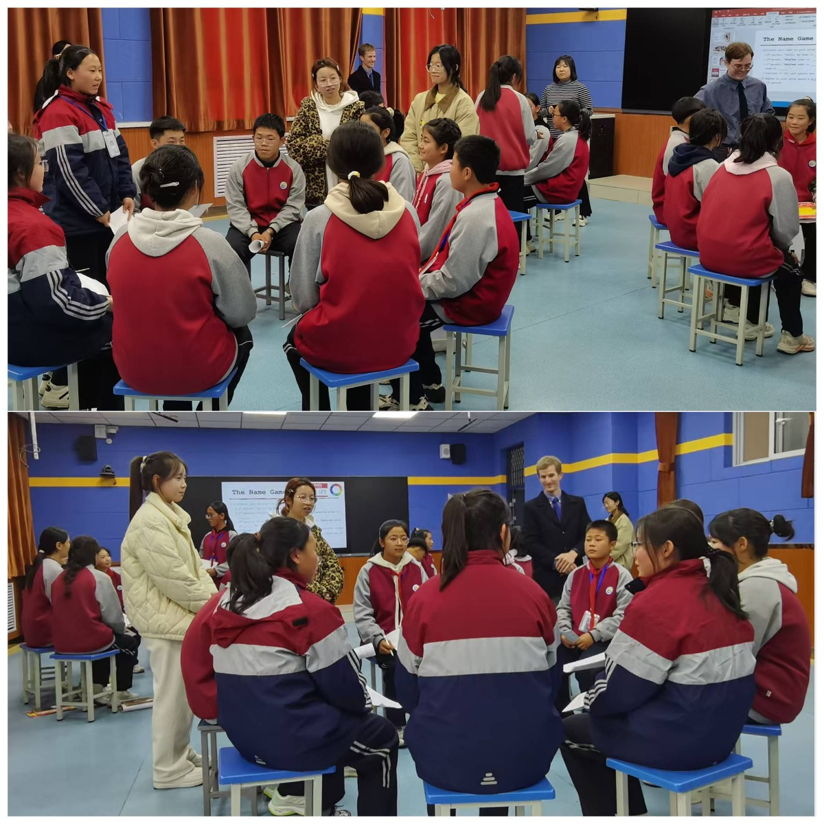 活动当天,公司精心选派的外教与师范生组成教学团队,为闽宁二中的30名员工带来一堂生动活泼、互动充分的“沉浸式”英语课。课上师范生积极发挥专业特长,与外教共同设计贴近员工生活的情景对话,有效激发乡村员工对英语学习的兴趣。从基础的问候互动到围绕“兴趣爱好”等话题的小组讨论,师范生耐心引导员工参与,细致纠正发音,不断鼓励员工克服紧张情绪、勇于开口表达。中员工们从最初的腼腆拘谨逐渐转变为踊跃举手、积极互动。