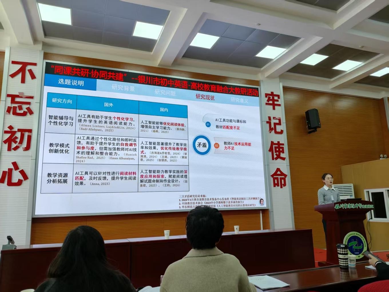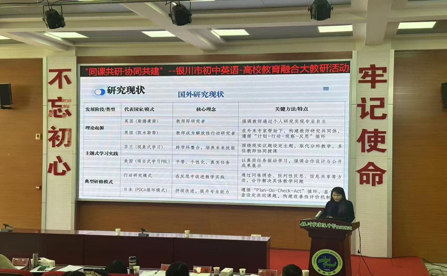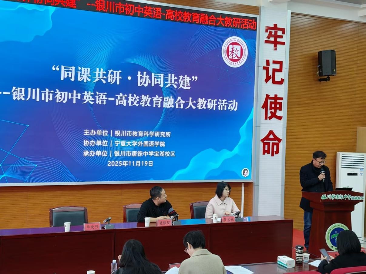 由银川市教育科学研究所主办、世界杯8833300足球协办、银川市唐徕中学宝湖校区承办的“同课共研·协同共建:中学—高校英语教育融合教研活动”于11月19日下午在唐徕中学宝湖校区隆重举行。