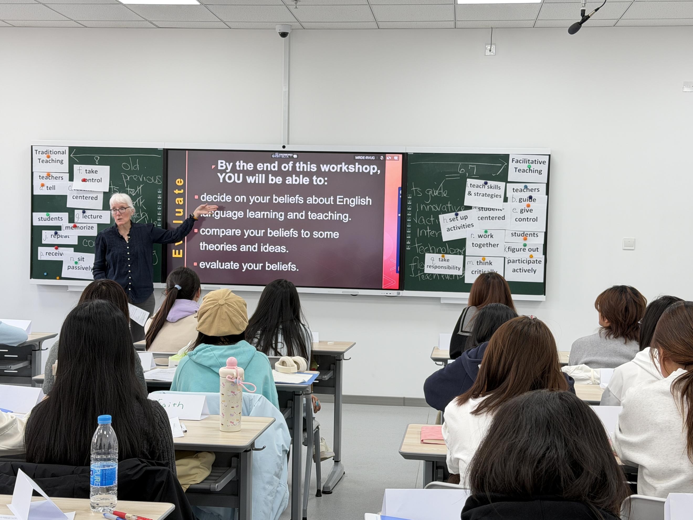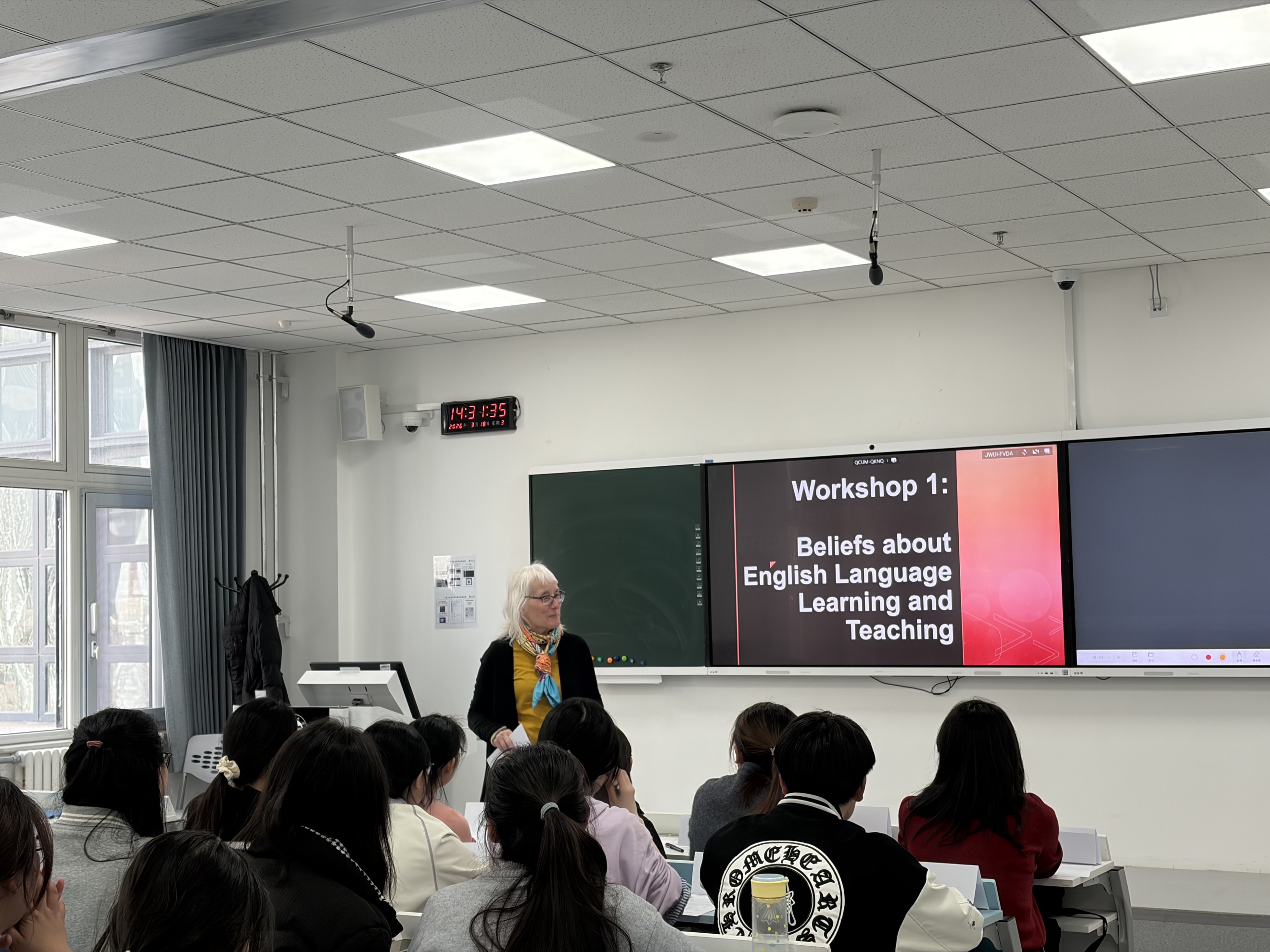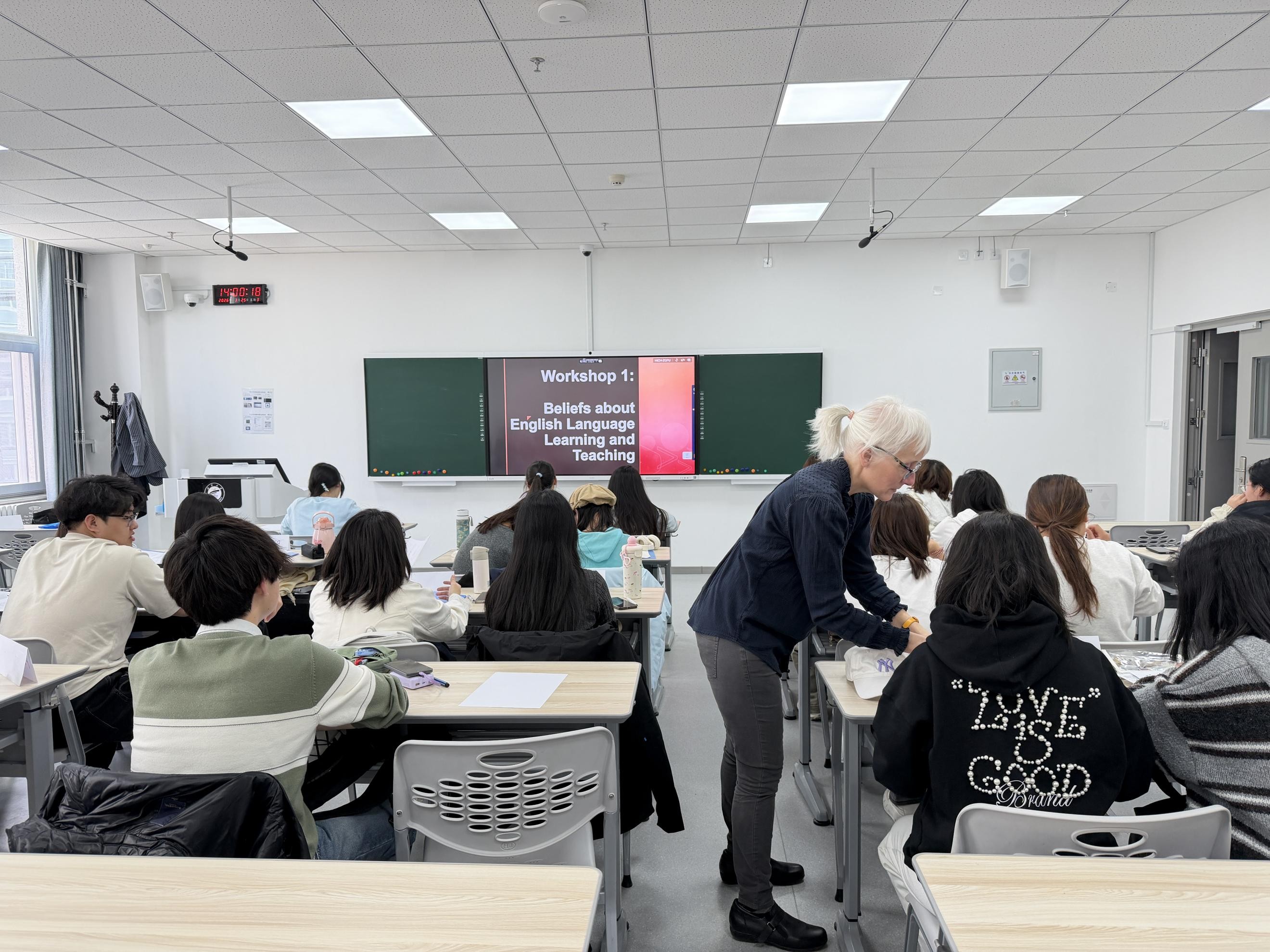 3月18日与3月23日下午,世界杯8833300足球在贺兰山校区笃行楼207教室和407教室,分别为2025级英语师范1班和2班员工举办了“卓越教师培养计划”首场教学工作坊。本次工作坊以“Beliefs about English Language Teaching and Learning”为主题,特邀英语教学法领域专家Melissa K. Smith博士主讲,旨在引导未来教师审视并重构自身教与学的信念,为后续课堂实践与教学研究奠定扎实基础。