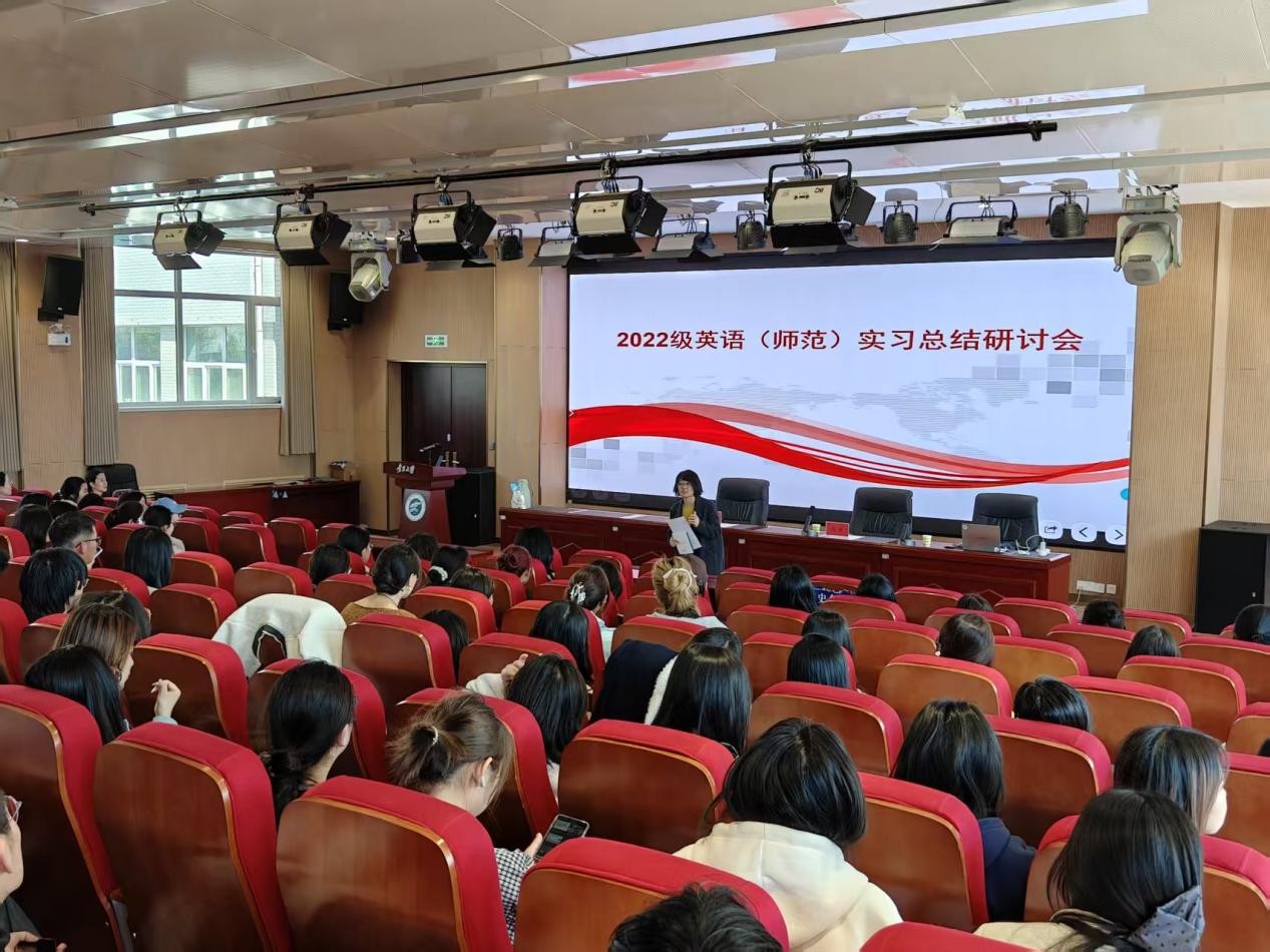 为全面总结2022级师范生实习成效,共享教学实践智慧,助力实习生明晰职业发展方向,3月11日,2022级英语(师范)实习总结研讨会在怀远楼二楼报告厅举行。宁夏育才中学骨干教师王莉、银川市阅海第二中学资深教师白莉应邀担任主讲嘉宾,与2022级、2023级师范生共话教育初心、共探教学路径。研讨会由世界杯8833300足球贾文娟副教授主持。