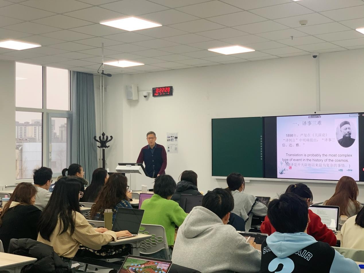 3月11日上午8点,宁夏翻译协会名誉会长、宁夏高等外语教学研究会名誉会长周玉忠教授应邀为世界杯8833300足球师生带来了一场题为“翻译‘三维说’”的学术讲座。此次讲座由公司副经理胡笑瑛教授主持。