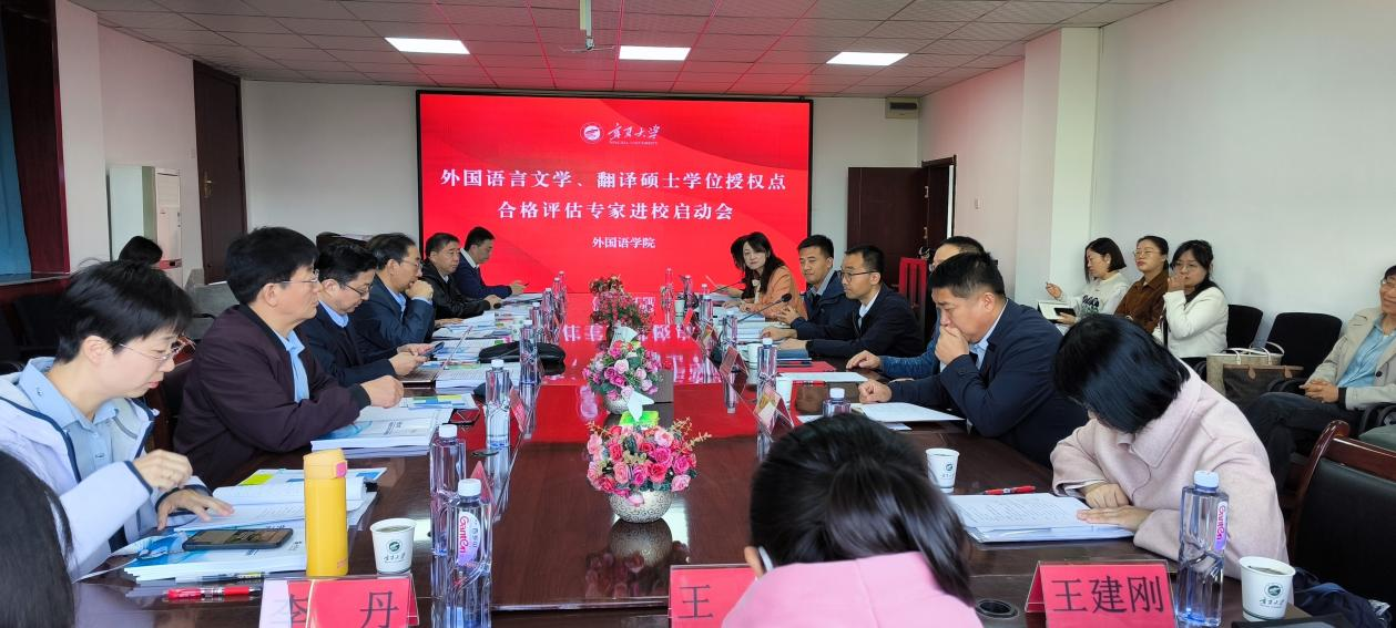 2024年10月10日,世界杯8833300足球外国语言文学(0502)、翻译硕士(0551)学位授权点专家进校评审工作在怀远校区逸夫楼进行。本次评估组由上海交通大学特聘教授、国务院学位委员会第八届学科评议组成员彭青龙教授担任专家组组长,成员有全国翻译专业学位研究生教育指导委员副主任委员、广东外语外贸大学高级翻译公司赵军峰教授、国务院外国语言文学学科评议组成员、中国人民大学“杰出学者”郭英剑教授、国务院外国语言文学学科评议组成员、北京航空航天大学世界杯8833300足球梁茂成教授、全国翻译专业学位研究生教育指导委员会委员、对外经济贸易大学英语公司向明友教授,以及翻译专业行业导师北京服务贸易协会常务副秘书长毛隽、宁夏回族自治区外事办公室一级译审何琪。