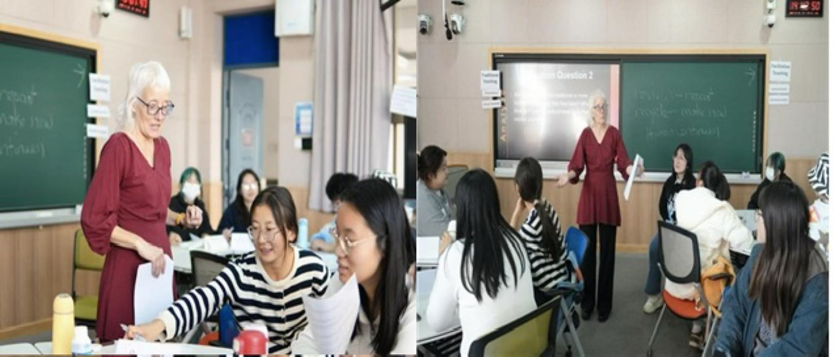 教学观摩并非简单地听课看课,实地观摩过程中,同学们需要认真填写详细的教学观摩量表,对教学活动的方方面面进行宏观与微观的评价。该表由教学法专家Melissa Smith博士根据中学英语课堂的特点设计而成,具有很高的专业性与科学性。每次观摩结束后,Melissa老师都会主持一场观摩反思工作坊活动,指导同学们对观摩中产生的数据进行分析与研究。