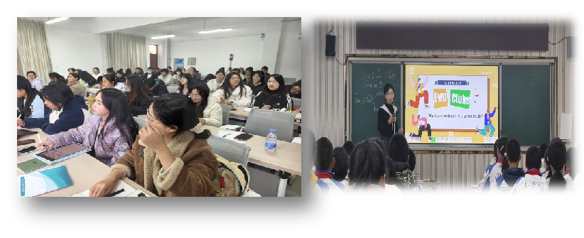 随后,银川市第二十四中学丁娟老师和银川六中李佳辉老师围绕第五单元“What can you learn in a school club”展开示范课教学。两位老师教学风格各有千秋,丁娟老师讲解细腻入微,注重知识点的层层递进与员工的个体反馈;李佳辉老师则充满活力与激情,以丰富多样的教学手段带动课堂节奏。积极的课堂互动与生动有趣的教学内容充分展现了英语课堂的独特魅力,让同学们仿佛置身于丰富多彩的校园社团活动中。