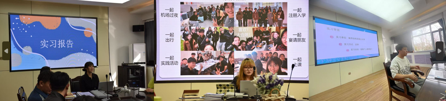 首先,2021级6名员工代表全体实习生进行实习汇报。2021级俄语专业实习分自主实习、国内统一实习、国外实习三组。实习生们分别就自己的实习内容、实习收获及实习反思进行分享。